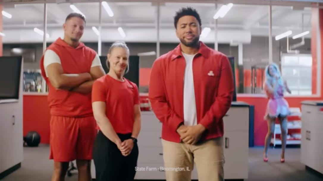 Jake from State Farm: Originally played by an actual State Farm agent, the campaign’s success led the company to cast Kevin Miles as the official spokesperson. Every ad reinforces the brand through rigorous visual and sonic consistency: Jake is always referred to as “Jake from State Farm,” dressed in red, surrounded by red-heavy design, and paired with a spoken variation of the classic 1980s jingle, “Like a good neighbor, State Farm is there” at the end of every ad. This intense, consistent reinforcement has made “Jake from State Farm” such a recognizable internal brand asset that it even allows the company to leverage celebrity star power without sacrificing brand recognition. State Farm now has the luxury of pairing Jake with A-listers like Patrick Mahomes, Drake, Arnold Schwarzenegger, and Jason Bateman while maintaining undiluted brand recall. Most brands incorporate celebrities into their advertising at the expense of recognition.
