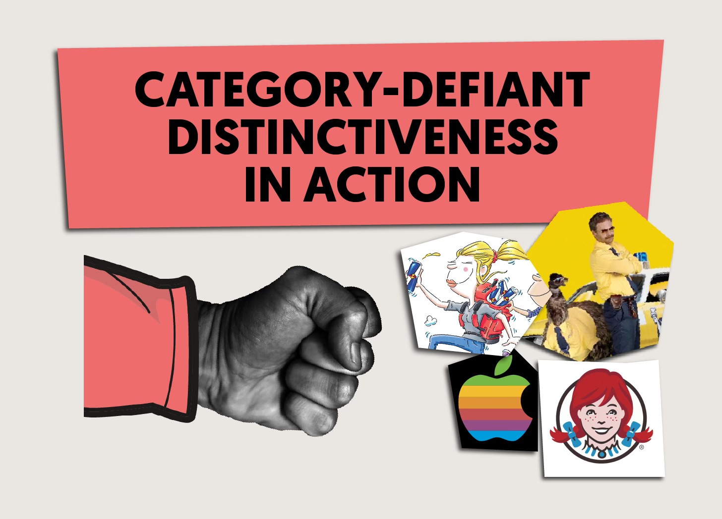 These are examples of what I call Category-Defiant Distinctiveness (CDD)—names and assets deliberately built to defy category conventions while remaining unmistakably tied to their brands.