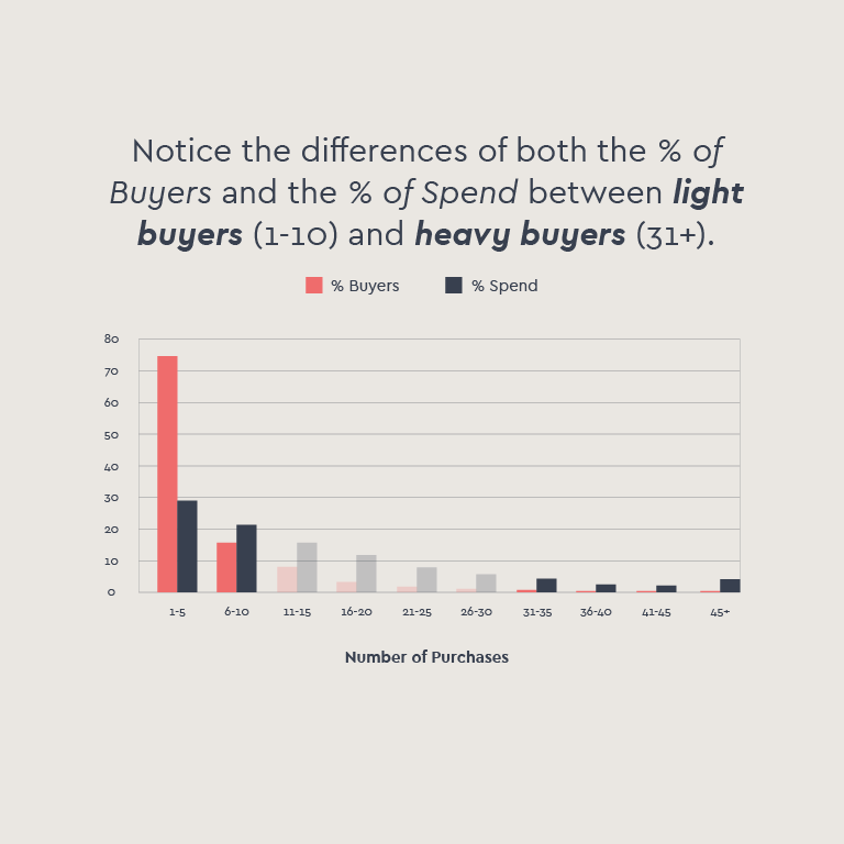 NEW BUYERS AND LIGHT BUYERS ARE FAR MORE VALUABLE FOR LONG-TERM GROWTH THAN HEAVY BUYERS, OR “MAGGIES.”
